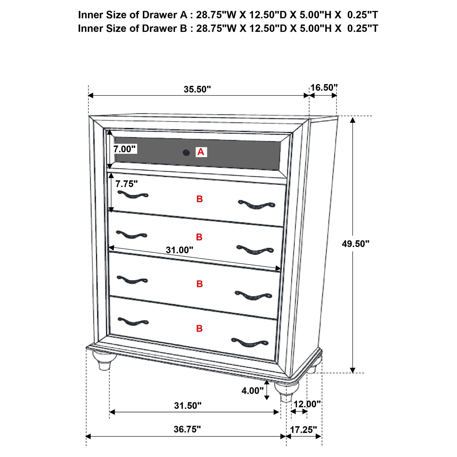 • Style: Modern Classics, • Fabric Color: White, • Nailhead Finish: Chrome, • Leg Color: Chrome, • Upholstery: Velvet, • Fabric Content: Polyester 100% , • Cleaning Code: X, • Number of Pieces: 5, • Size: Queen, • Foundation Required: No, • Overall Weight Limit: 600 Lbs, • Drawer Weight Limit: 45 Lbs, • Tipover Restraint: Yes, • Assembly Required: Yes, • Materials: Acrylic, Fabric, Foam, Leatherette, Medium Density Fiberboard (MDF), Metal, Okume Veneer, Particle Board (Pb), Rubberwood