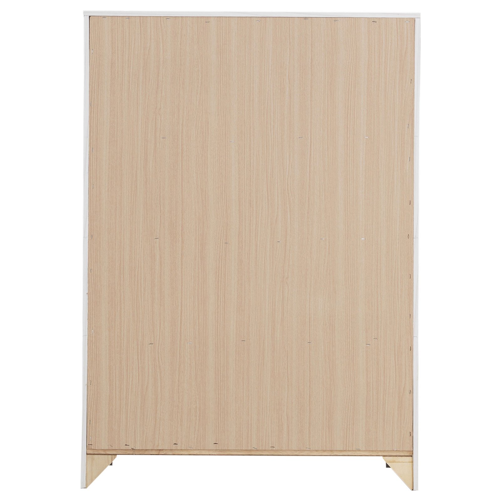 • Four-drawer chest with a sleek, modern silhouette and clean lines, • Coastal white finish adds a fresh and airy touch to any bedroom, • Spacious drawers provide ample storage for clothing and essentials, • Sturdy engineered wood construction ensures long-lasting durability, • Matte dark bronze handles contrast beautifully with the finish, • Durable laminate veneer resists scratches, stains, and everyday wear