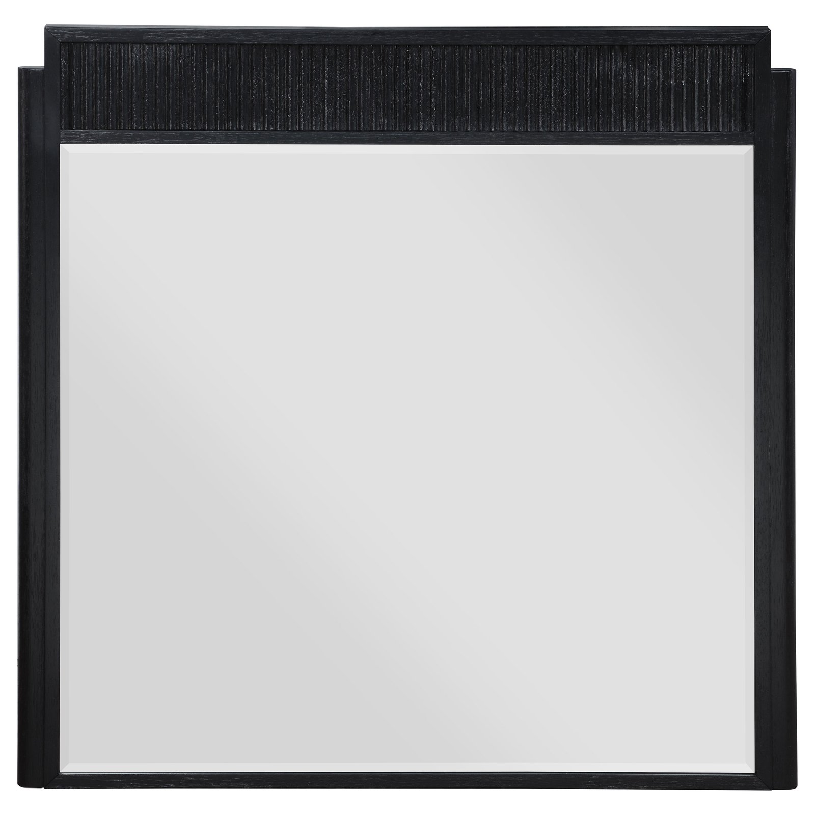 • Stylish and modern, a contemporary wood bedroom set features a wire brushed black finish, • Square headboard and footboard create a complementary pairing and open silhouette, • Fluted texturing highlights the bed, nightstand, dresser and mirror, • Drawers feature demi-lune metal handles in a warm golden tone for sophisticated contrast, • Bed includes slats with support legs to provide an excellent base for your mattress set, • Drawers feature English dovetail joinery for excellent craftsmanship