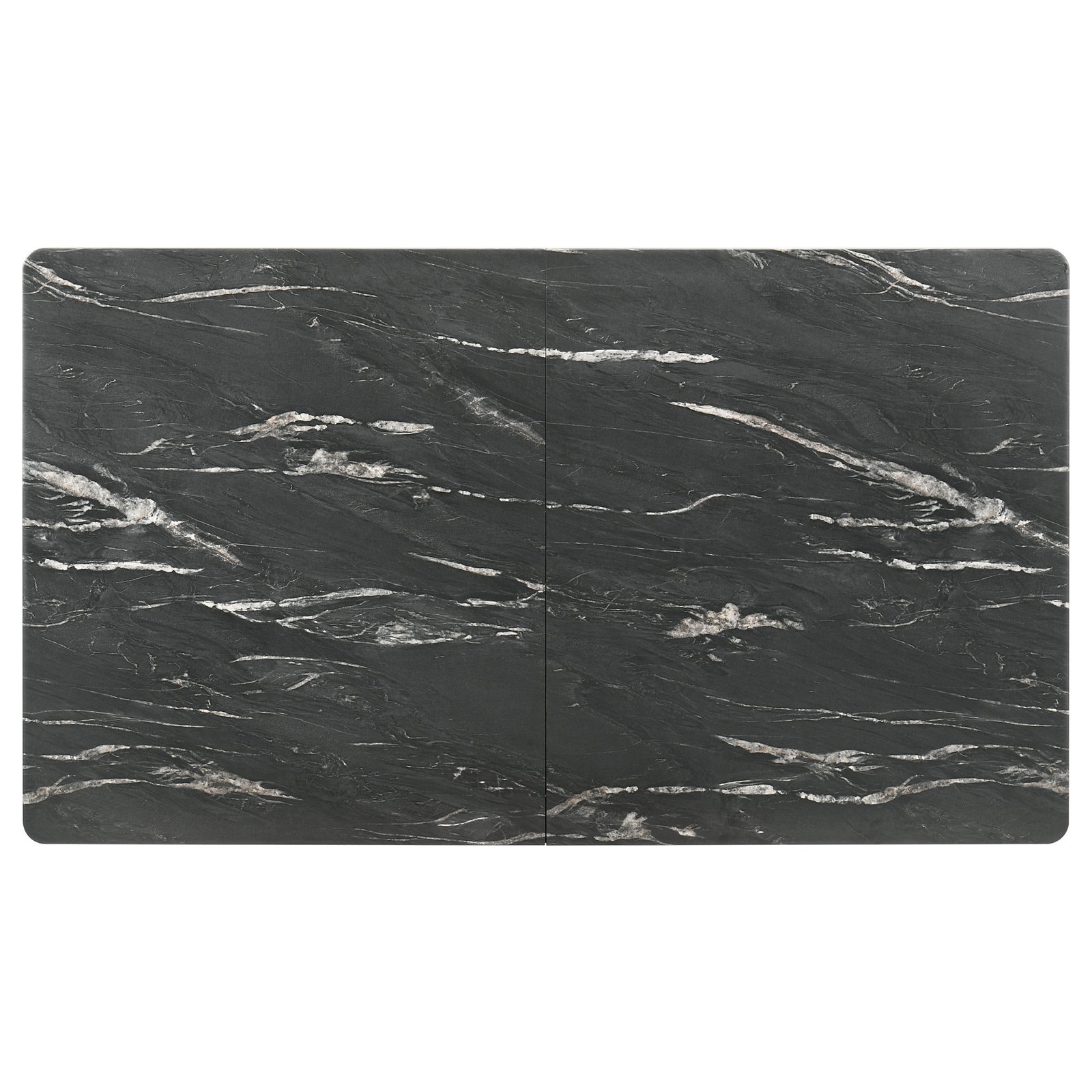 • Stylish and chic, a modern dining table features fin-style legs for a rich look, • Faux marble finish tabletop creates a sense of luxury perfect for a dedicated dining room, • Black finish base and leaf create drama and depth, offering richness and character in any setting, • Edge of the table is beveled to create a stylish sense of dimension and sleek style, • Table includes a self-storing leaf for easy expansion to accommodate guests