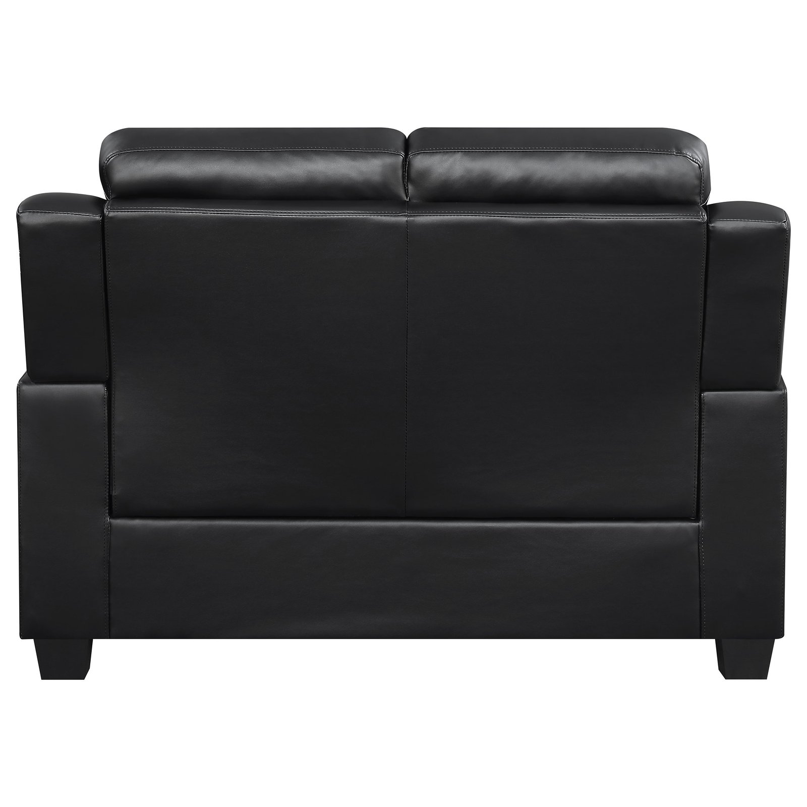 • Stylish stationary sofa collection, • Perfect for small spaces, • Soft, breathable, black leatherette upholstery, • Ultra-plush headrest and armrests, • Subtle tufting on backrests for added style, • Durable kiln dried hardwood frame