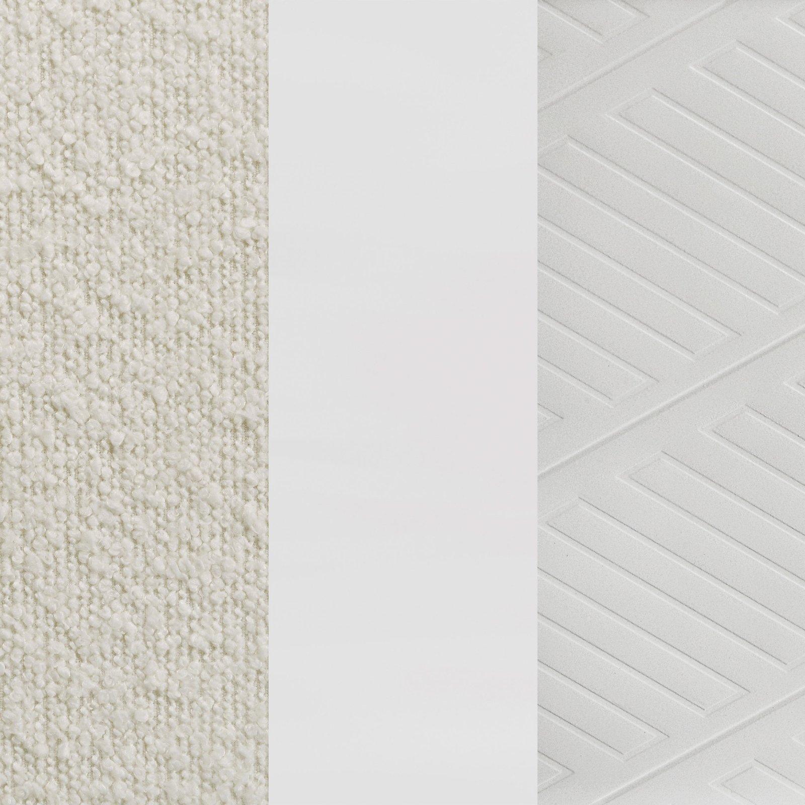 • Queen bed with 3-dimensional headboard upholstered in off-white boucle fabric, • Modern Italian design with clean lines and opulent aesthetics, • Picture framed recessed panels with embossed herringbone graphic patterns, • Mirror framing and acrylic legs with polished chrome metal hardware, • Touch LED lights in the headboard provide added convenience and a modern touch to your bedroom