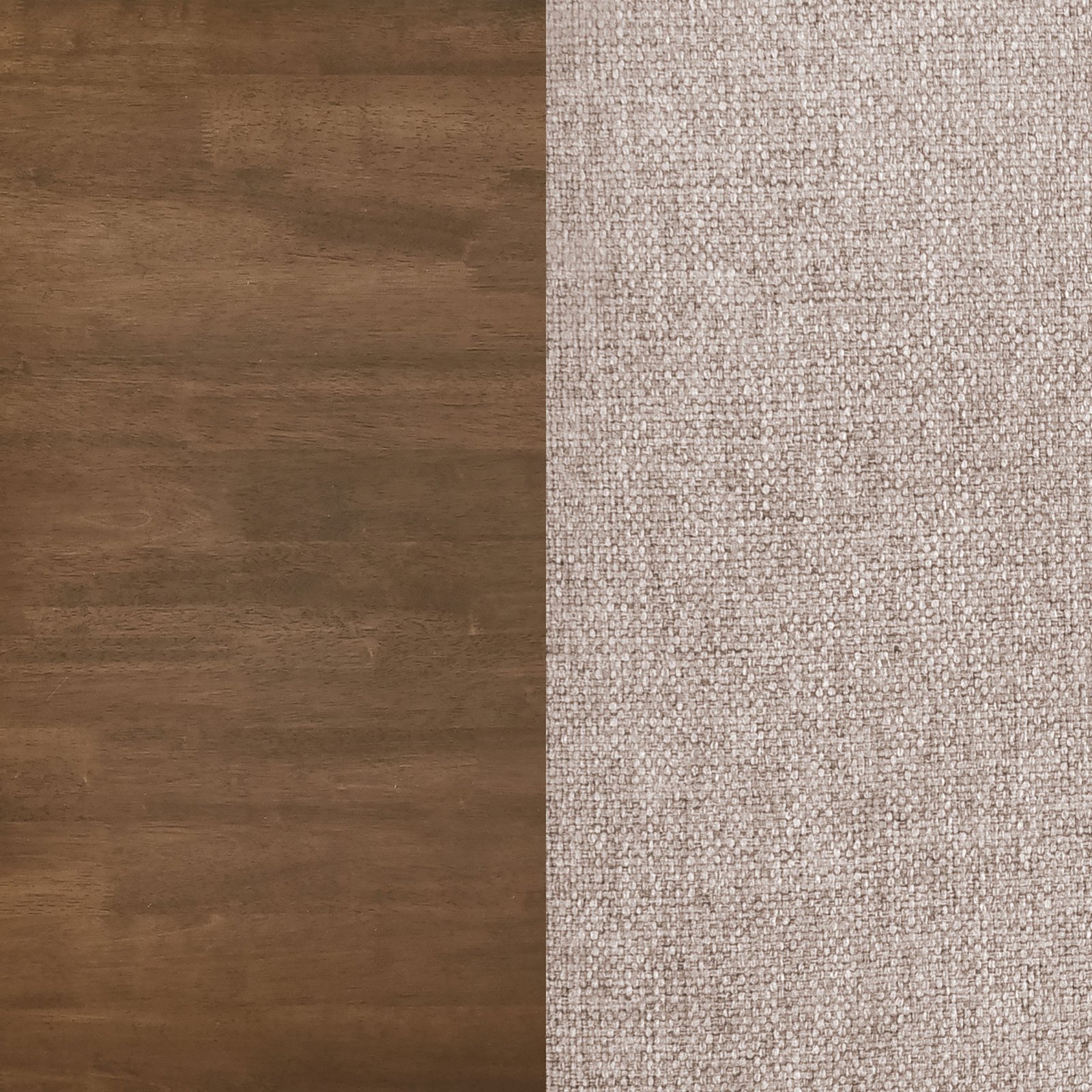 • Style: Mid-Century Modern, • Fabric Color: Tan, • Wood Finish: Natural Walnut, • Upholstery: Fabric, • Fabric Content: Polyester 100% , • Cleaning Code: X, • Number of Pieces: 5, • Overall Weight Limit: 300 Lbs , • Assembly Required: Yes, • Materials: Fabric, Foam, Medium Density Fiberboard (Mdf), Rubberwood, Rubberwood Veneer