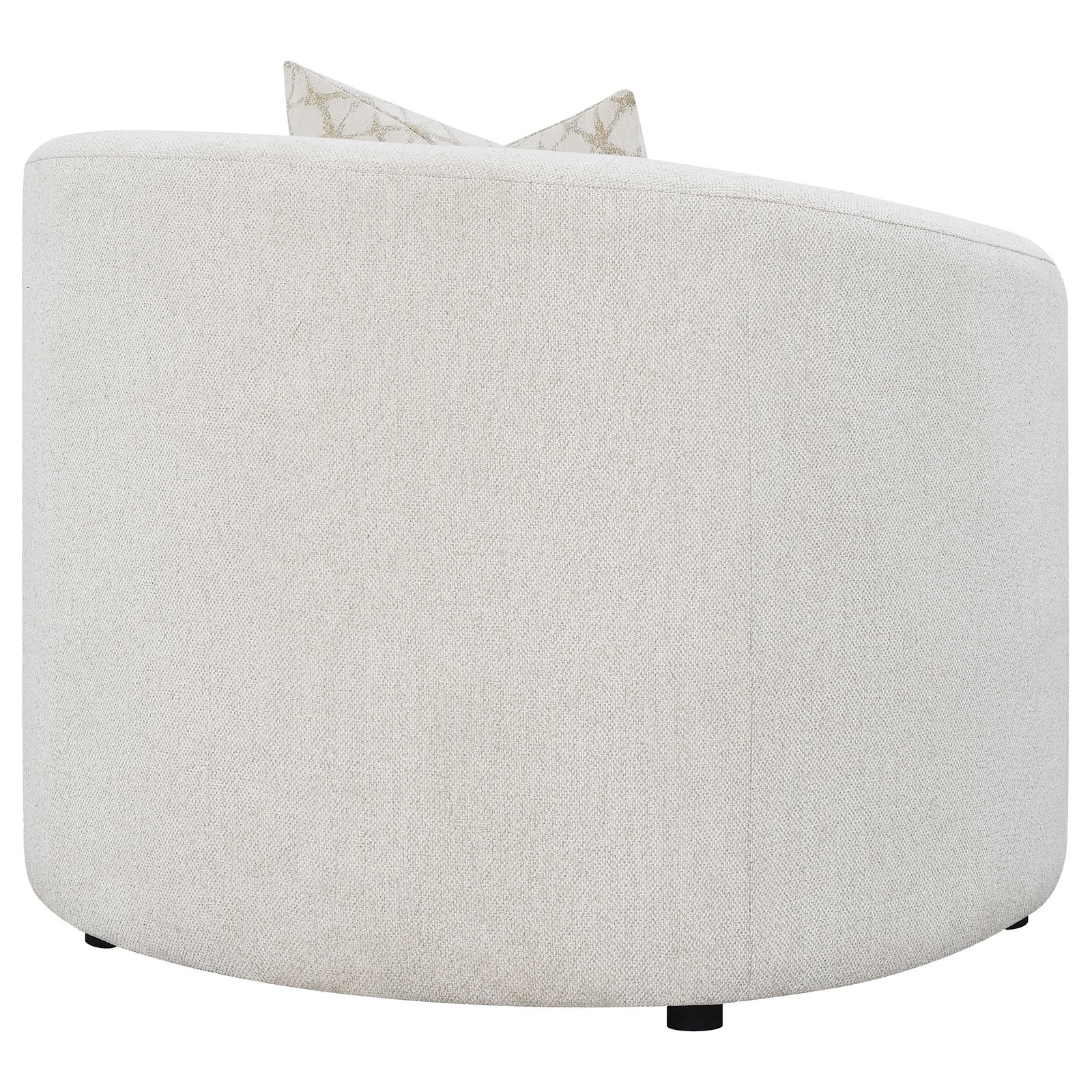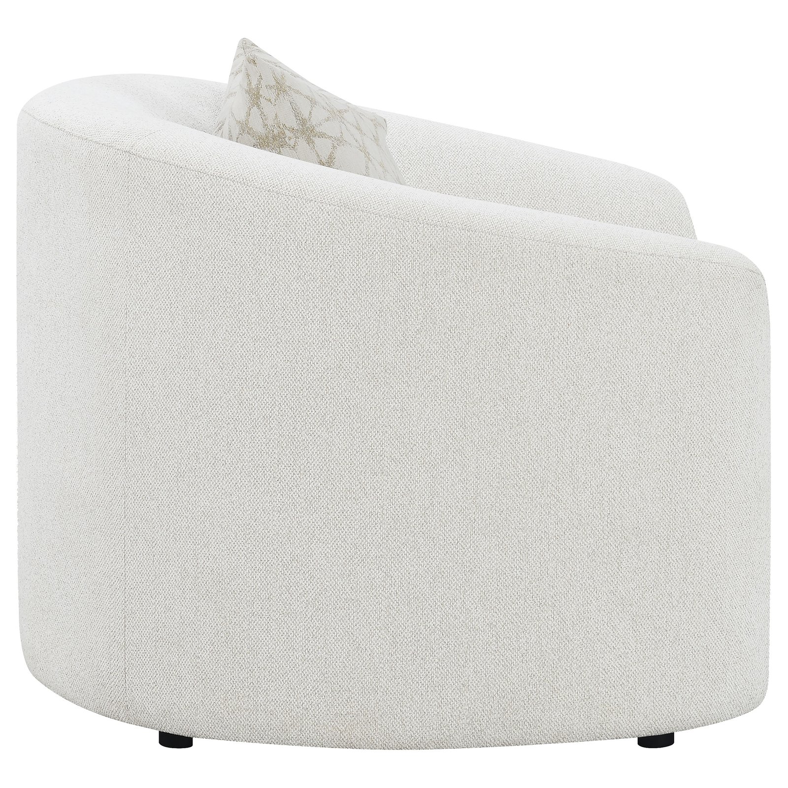 • Accent chair wrapped in soft latte boucle upholstery for texture, • Curved silhouette with sloped armrests adds gentle modern contour, • Plush seat cushion delivers long-lasting comfort and relaxation, • Tight back design keeps a smooth, well-tailored appearance, • Accent pillow with faux down fill provides cozy decorative touch, • Perfect for reading corners, lounges, or stylish living spaces