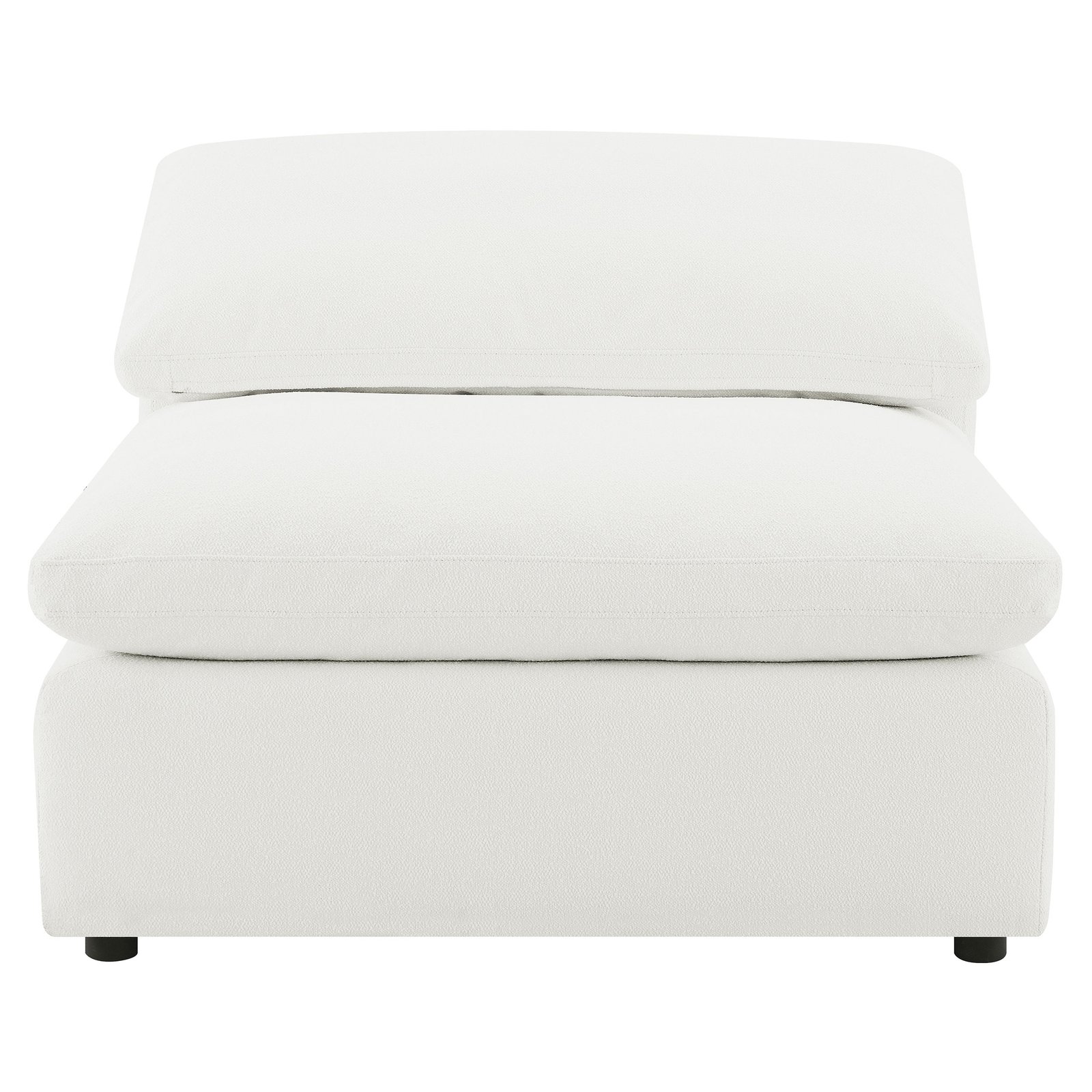 Create the perfect configuration for your modular sectional with a modern armless chair. It features neutral water-resistant boucle upholstery for an on-trend look and feel that works in a wide range of living spaces. The armless chair connects with additional chairs or corners, creating a custom sectional setup in your living room. Foam cushions pair with feather blend for exceptional comfort and a plush feel you’ll love when lounging. A loose pillow back completes the look.