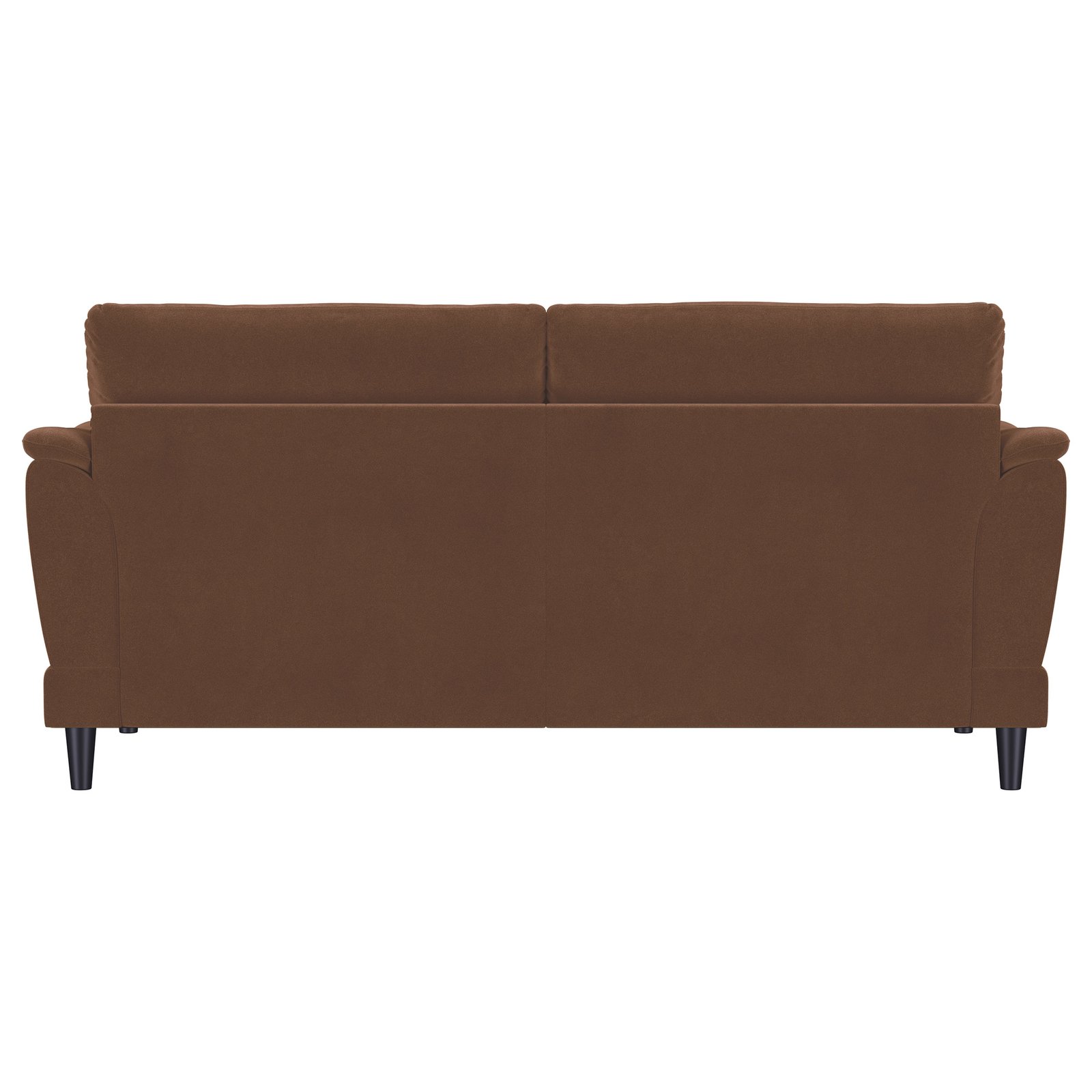 • Retro-inspired sofa with curved tufted arms, • Rust woven fabric upholstery for a cozy, chic look, • Fully encased engineered wood frame for durability, • Sinuous spring seating and foam cushion construction, • Attached seat cushions and removable back cushions, • Solid wood tapered legs in espresso finish