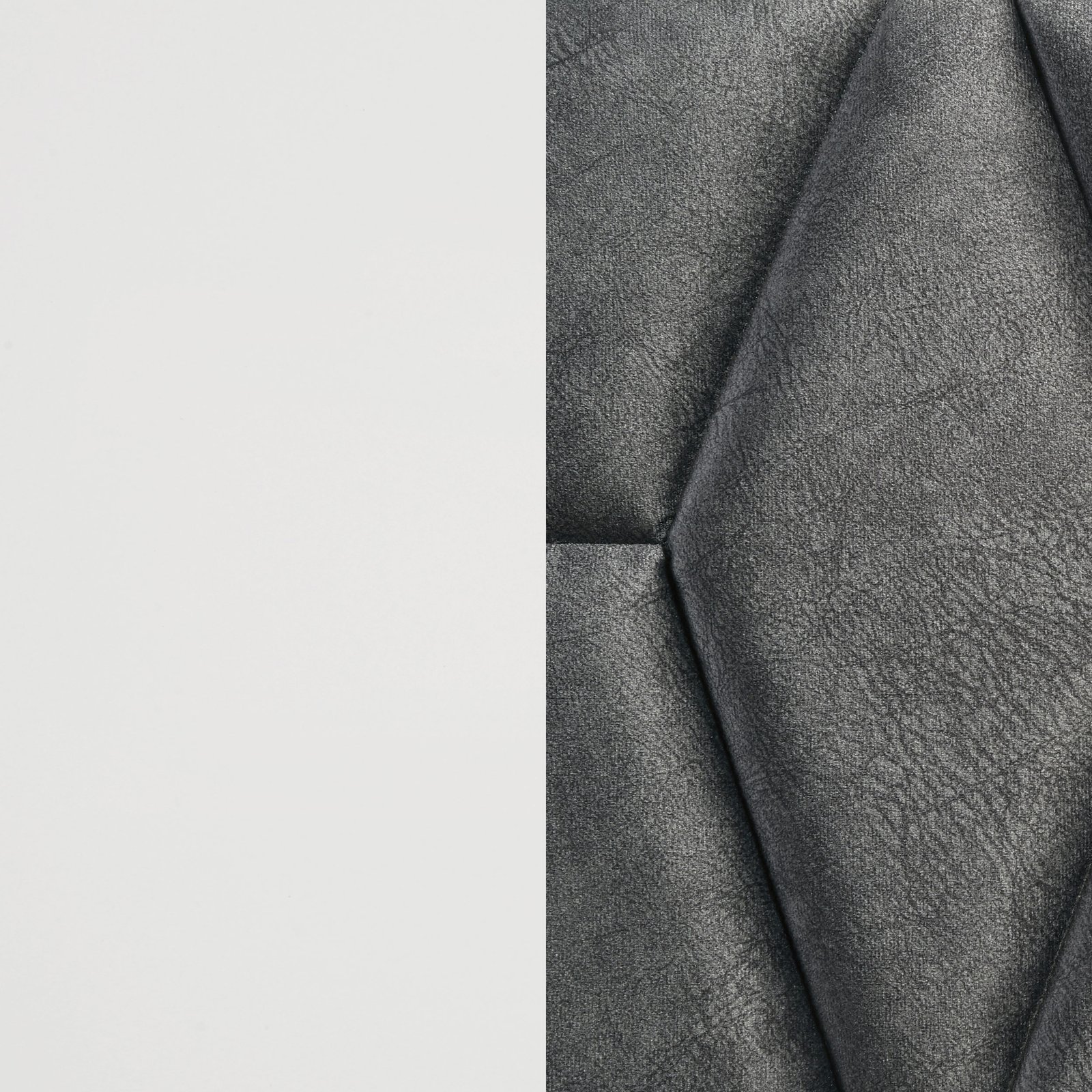• A modern bed creates a stylish focal point with an upholstered headboard and sleek silhouette, • Elongated hexagonal tufting creates a bold look in a padded headboard with dark gray fabric, • White finish is crisp and bright, offering modern appeal and an open, airy feel, • Black accents create a sense of depth and contrast in a contemporary bedroom, • A foundation is required for use with this modern bed, which has a 600-pound weight limit